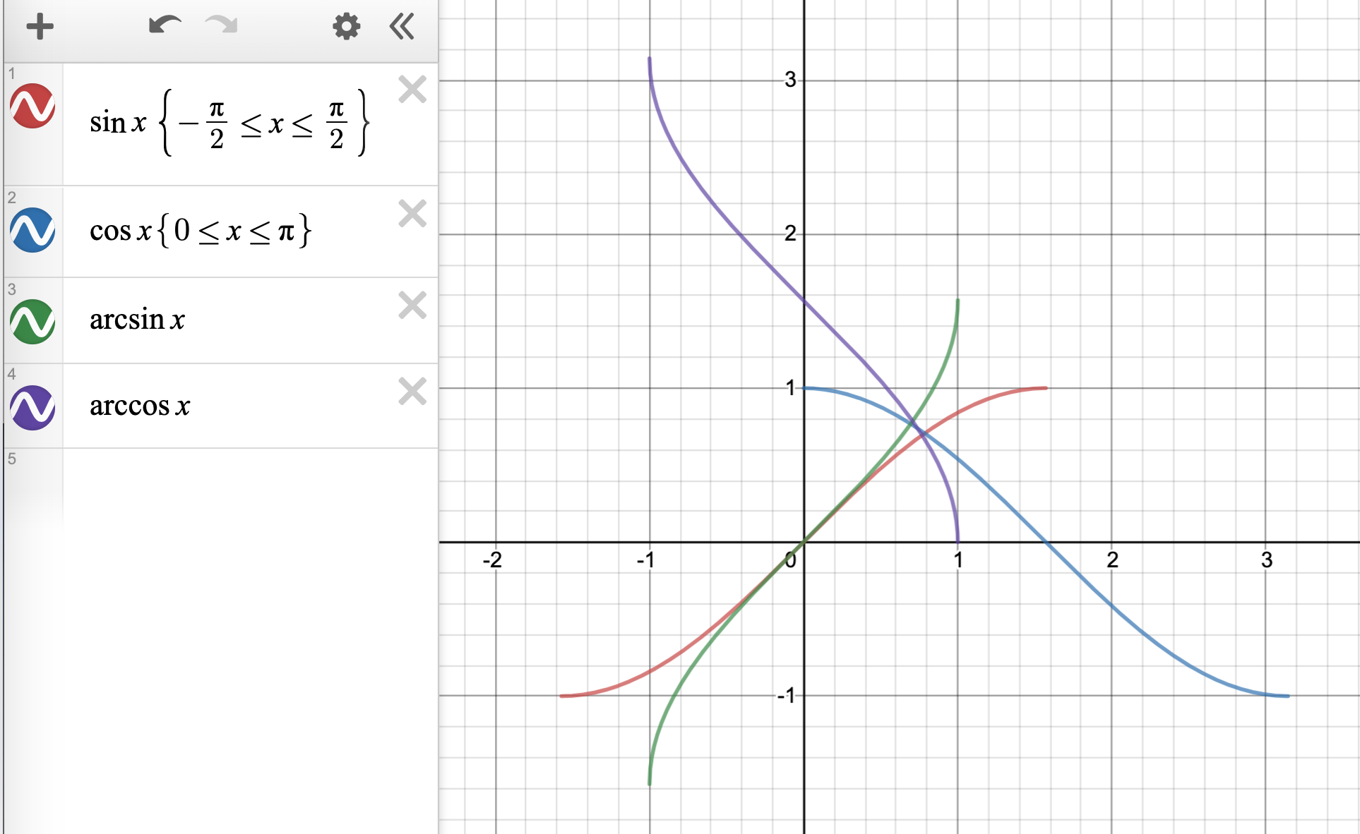 The ``trig bug'' (the graphs of arcsin, arccos and their inverses)